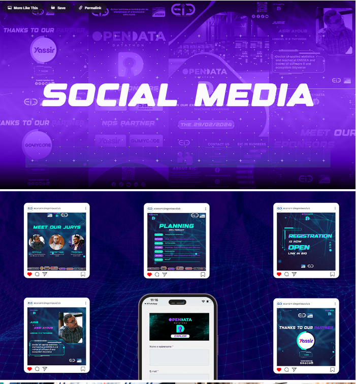 Visual Identity for tech event called open data ( social media post + banner + badgers + flayers + stickers + posters ….)