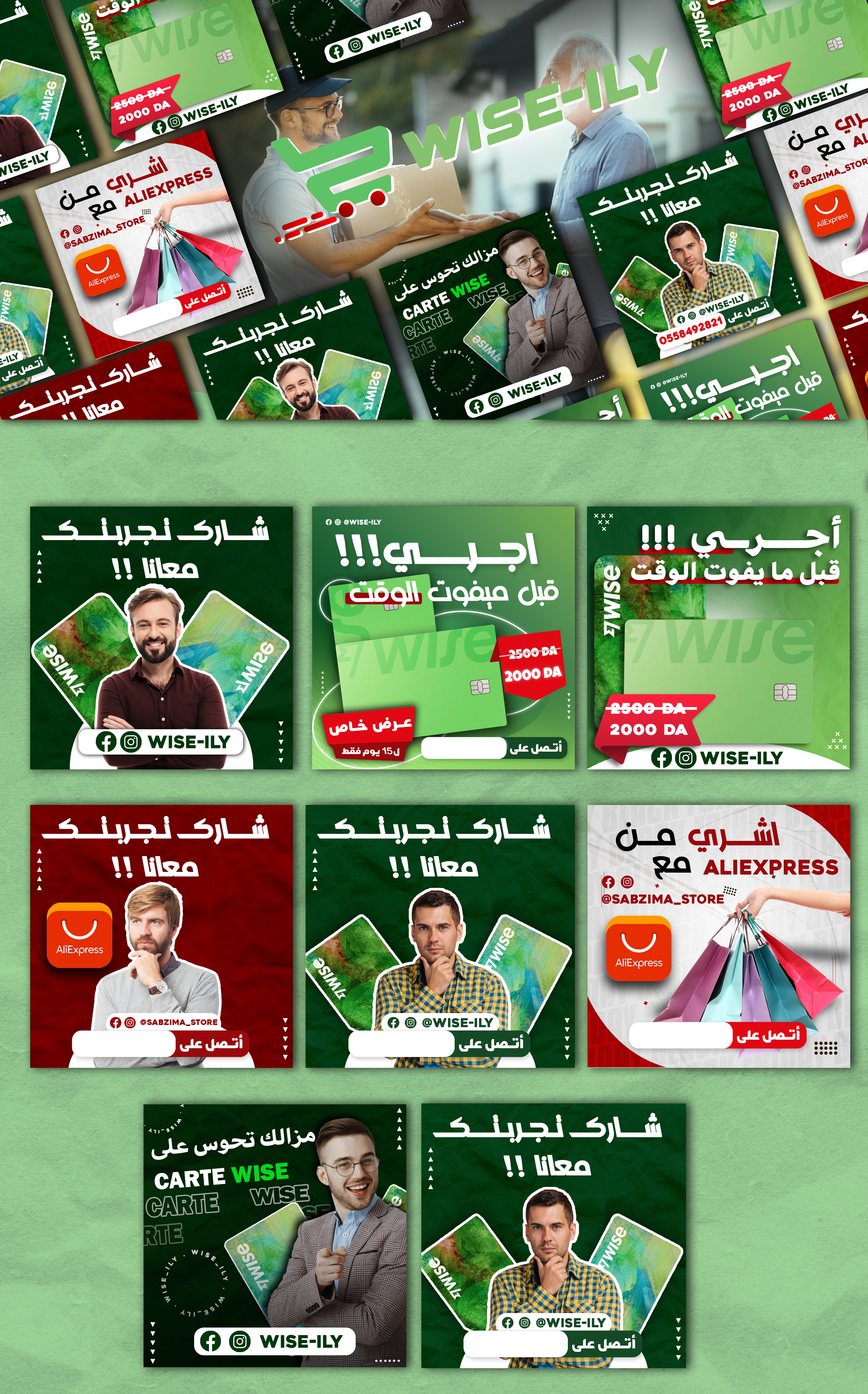 Social media design for digital store that sells usdt , make wise cart , aliexpress product